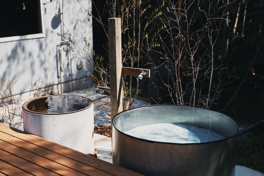 敷地内から湧き出る天然水もこの施設の大きな特徴のひとつです。飲用としてはもちろん、贅沢にも露天風呂のような趣のある浴槽や、クールダウンに最適な水風呂、夏季には水遊びを楽しめるプールにも使用されています。自然の恵みを肌で感じながら、リフレッシュできる特別な体験を提供します。