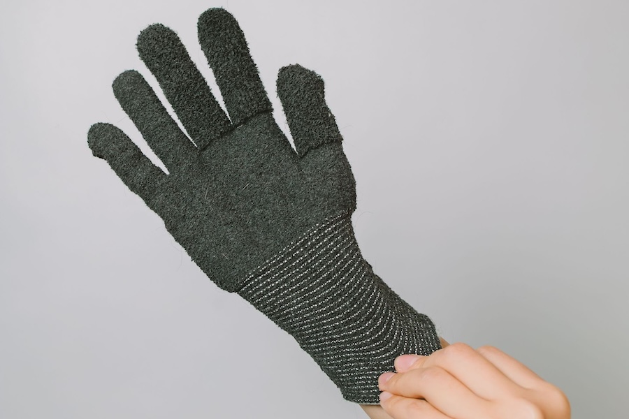 手袋の肌面には、般的な糸と比べて繊維の隙間が小さく滑りにくいマイクロファイバーを使用しており、手袋がズレにくいように設計されています。