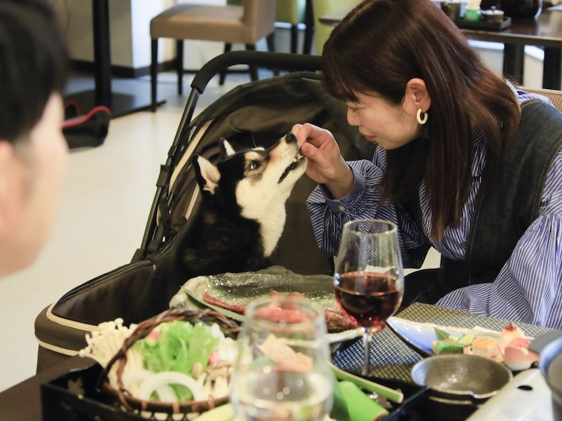 客室は4タイプが用意されており、すべての部屋で愛犬が自由に過ごせる「ワンちゃんフリー」の設定です。夕食は地元の食材を活かした会席料理が、朝食は心温まる和朝食が提供されます。