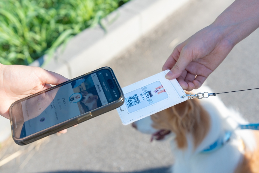NFC(近距離無線通信)とQRコードを搭載しており、スマートフォンをかざすかQRコードを読み取るだけで、愛犬のプロフィールやSNSアカウントなどの情報を簡単に表示し、初対面の相手とも安全に連絡先を交換できるのが特徴です。