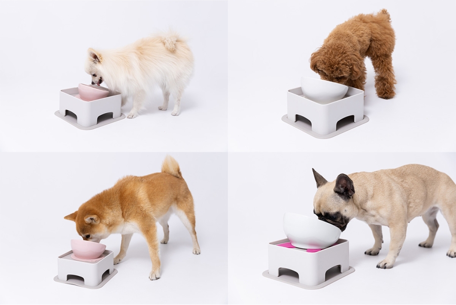超小型犬から中小型犬、子犬期からシニア期まで、さまざまな犬種や体格、成長段階に合わせて高さと角度を4パターンに調整できるペット用の食器台です。