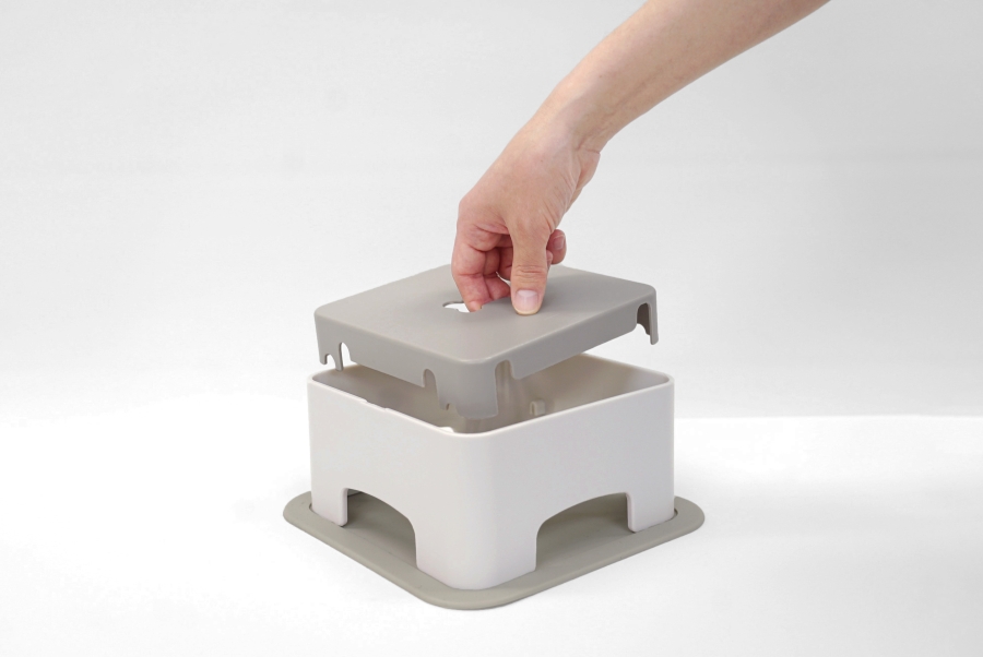 天板のはめ方を変えることで、犬にとって食べやすい姿勢をサポートすることができます。また、本体と天板を合わせると、インテリアに馴染むオシャレなグレーカラーになりました。