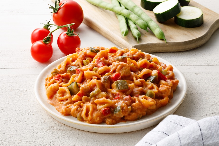 ラインナップは「豚肉とズッキーニの仲良しごはん」「鶏肉とグリンピースの仲良しごはん」「鯛とチーズの仲良しごはん」の3種類です。それぞれショートパスタやリゾット風など、犬も人も食べやすいように工夫されています。