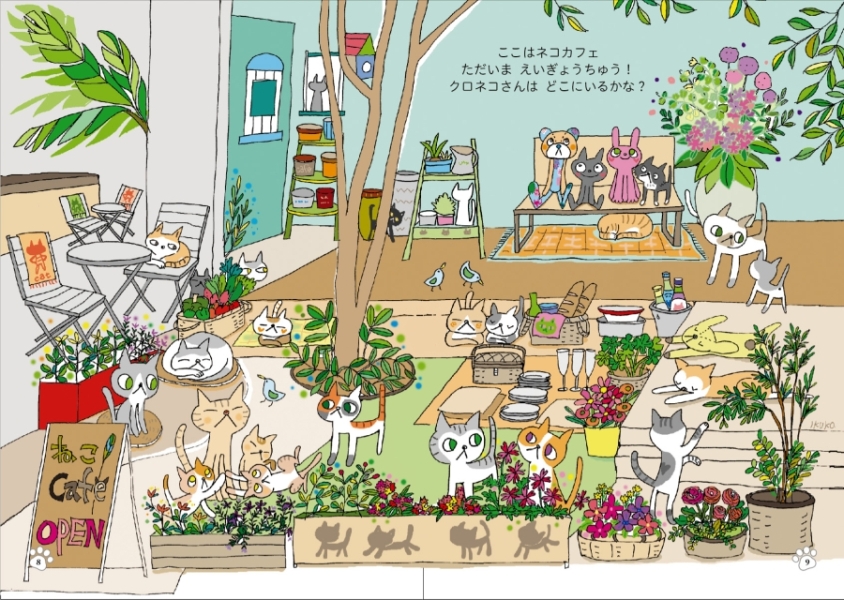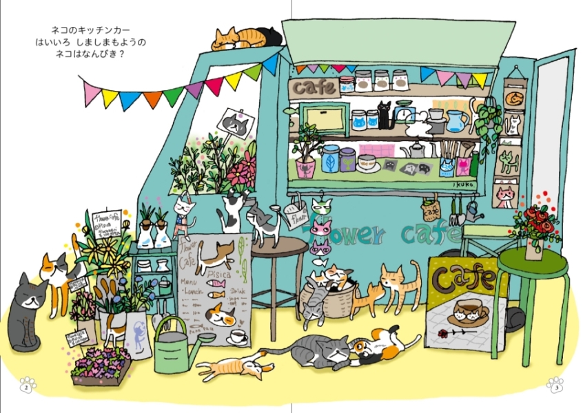 三毛猫や茶トラ、キジトラ、サバトラといったさまざまな種類の猫たちが登場し、読者が絵本からお気に入りの猫を探して楽しめる内容です。
