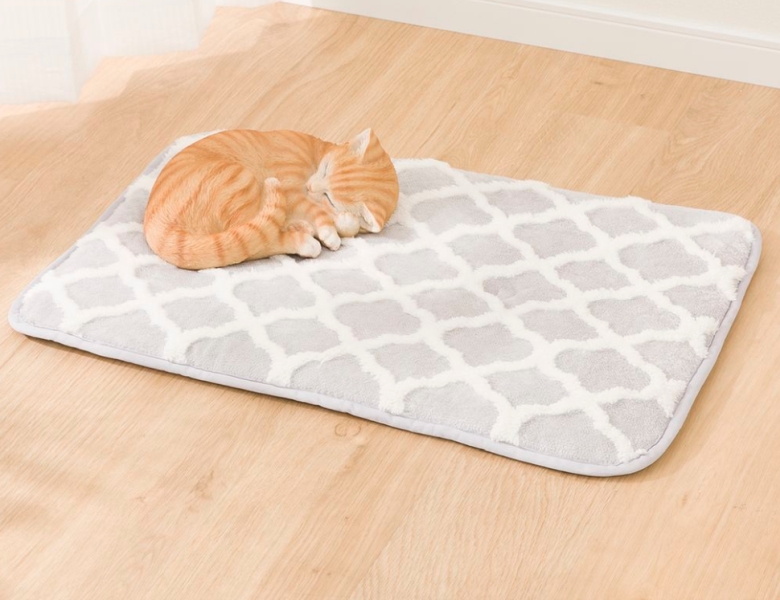 「Nウォーム」は、体から発散される水分を熱に変える吸湿発熱生地が特徴の素材です。2025年モデルのペット用寝具シリーズは、このあたたかさに加え、表生地に抗菌防臭機能が施されています。裏面にはすべり止めが付いており、ペットが飛び乗ってもズレにくい仕様です。