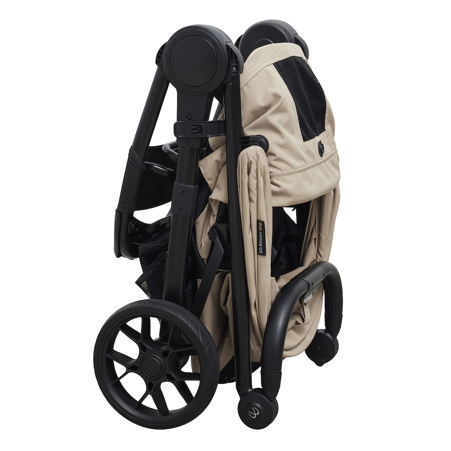 車載のしやすさも考慮されており、コット部分を外さずに片手でたためて簡単に開閉できる折りたたみ構造です。クルマへの積み下ろしや自宅での収納にも便利で、持ち運び中の不意な展開を防ぐセーフティロックも付いています。