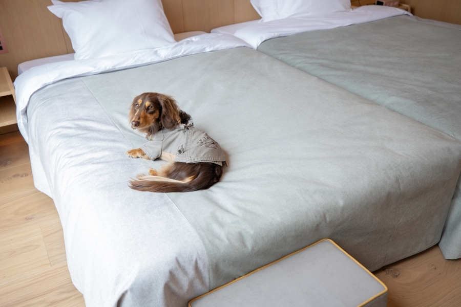 アメニティ面では、愛犬用のベッド、トイレ、ベッドステップ、ペットカートなどの必需品に加え、飼い主とお揃いのデザインの館内着もサイズ別に用意されています。また、サステナビリティへの取り組みとして、アメニティには竹などの自然素材が採用され、環境に配慮した運営が行われます。