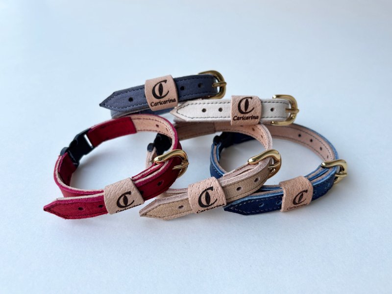 カリカリーナは、地元の革工房・伝右衛門製作所と共同開発した猫用レザー首輪「colarina(カラリーナ)」を公式オンラインストアで発売しました。