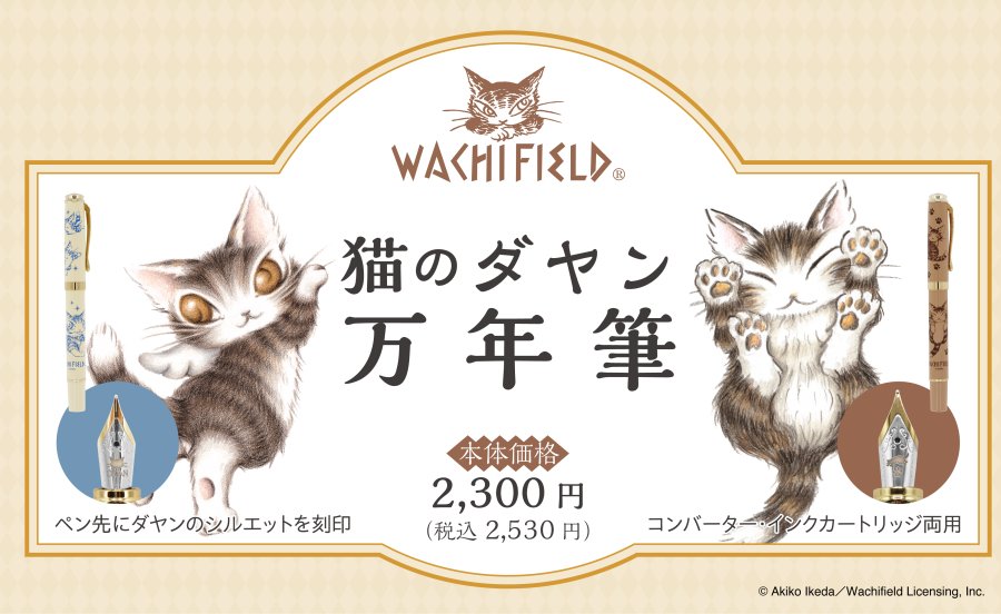 日本出版販売は、絵本作家・池田あきこさんが手がけるキャラクター「猫のダヤン」とコラボレーションした新商品「猫のダヤン 万年筆」を全国の書店や雑貨店などで発売しました。
