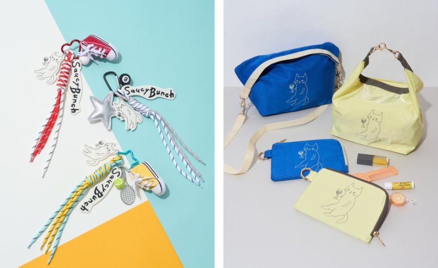 スニーカーやスポーツモチーフとネコを組み合わせた「チャーム(5,280円)」のほか、鮮やかなカラーリングの「バッグインバッグ(4,950円)」や「マルチポーチ(3,850円)」をラインナップ。日常のなかで目を惹く主役級のデザインとして、幅広い世代に向けて提案されています。