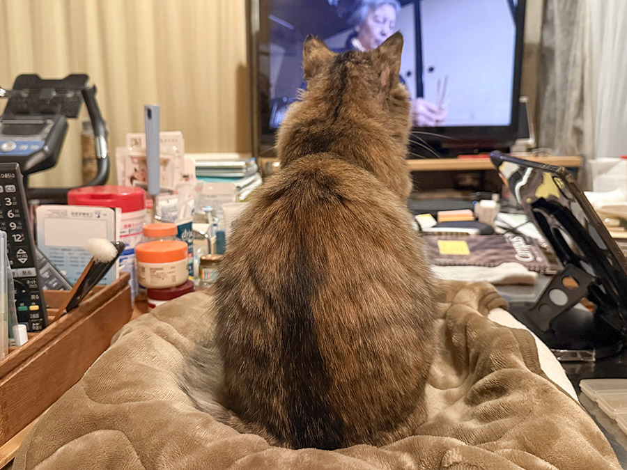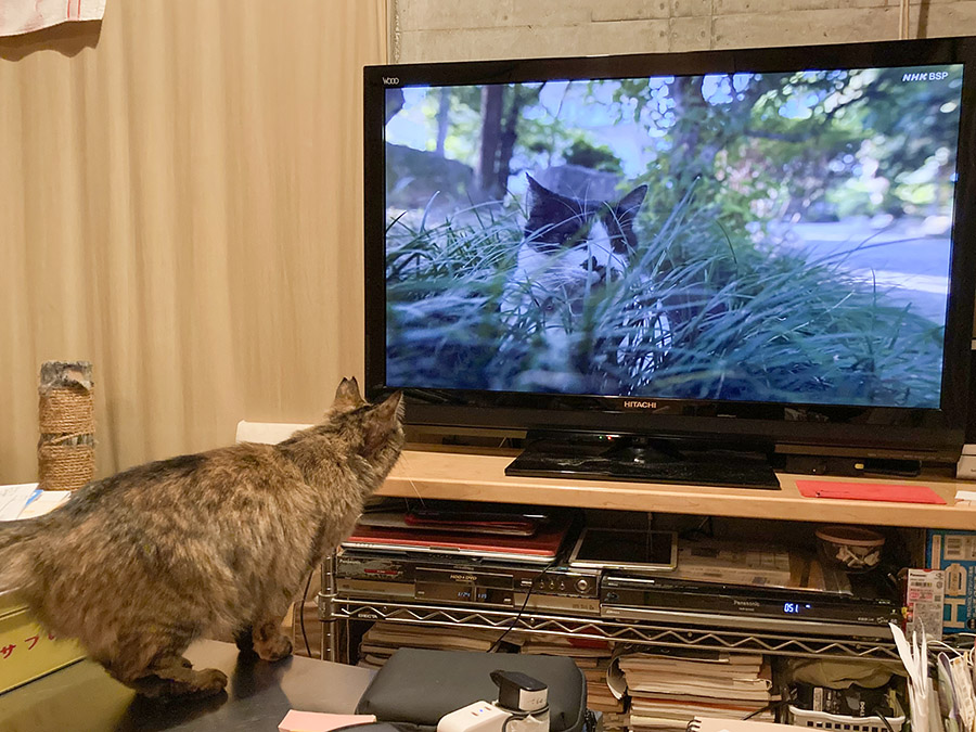 たとえばNHK「岩合光昭の世界ネコ歩き」が始まったりするとすぐに観始めて、しかも最初から最後までずっと観ていたりします。猫以外の動物が出てくる番組も好きですし、スポーツ番組も科学番組も全体的に好きなようです。