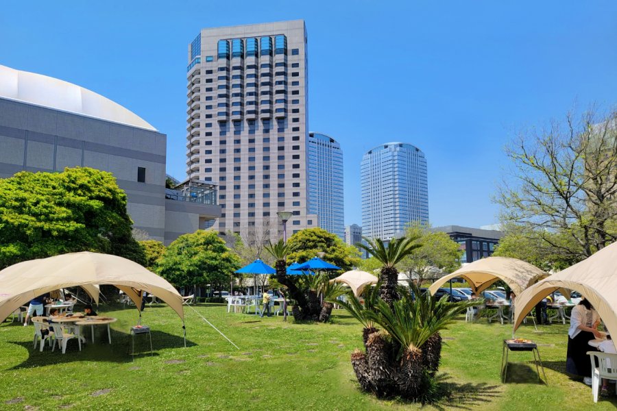 同イベントでは、大切な家族の一員である愛犬と一緒に過ごせる専用のペット同伴エリアが設けられています。一般的なバーベキューに必要な食材、道具の準備、火おこし、後片付けの手間は一切なく、炭やコンロ、調理器具などはすべてホテル側が用意します。利用者は身軽な状態で、ホテルならではのサービスとともに優雅なアウトドアダイニングを愉しむことができます。