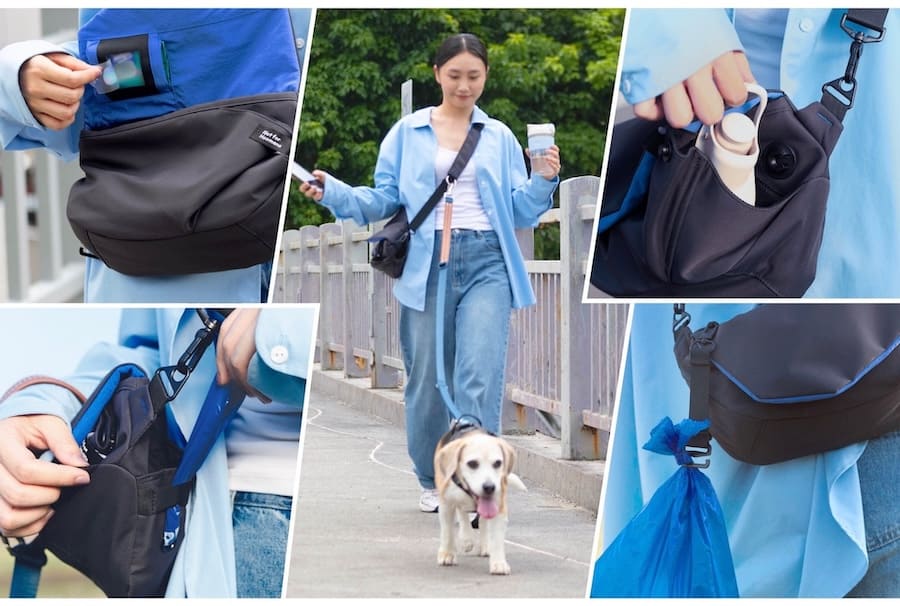 同ブランドのフラッグシップモデルである「DogGoバッグ」は、2025年度グッドデザイン賞を受賞した多機能なお散歩専用バッグです。ウェットティッシュやマナー袋を外側から片手で取り出せる専用ポケット、リードを一時的に固定できる肩フックなど、お散歩中の利便性を追求した設計が特徴となっています。