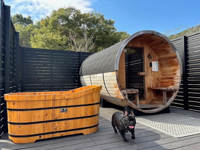 宿泊設備も充実しており、全棟にプライベートドッグランが付いたトレーラーハウスや、関東最大級となる600平方メートルのノーリードキャンプサイトを備えています。トレーラーハウス内には愛犬との添い寝が可能なベッドルームをはじめ、専用サウナや水風呂、プロジェクター、豊富なドッグアメニティが用意されており、家族全員で過ごせる環境が整っています。