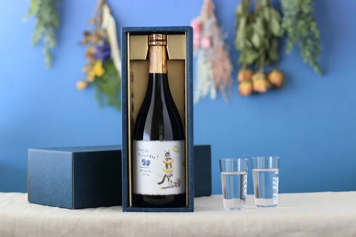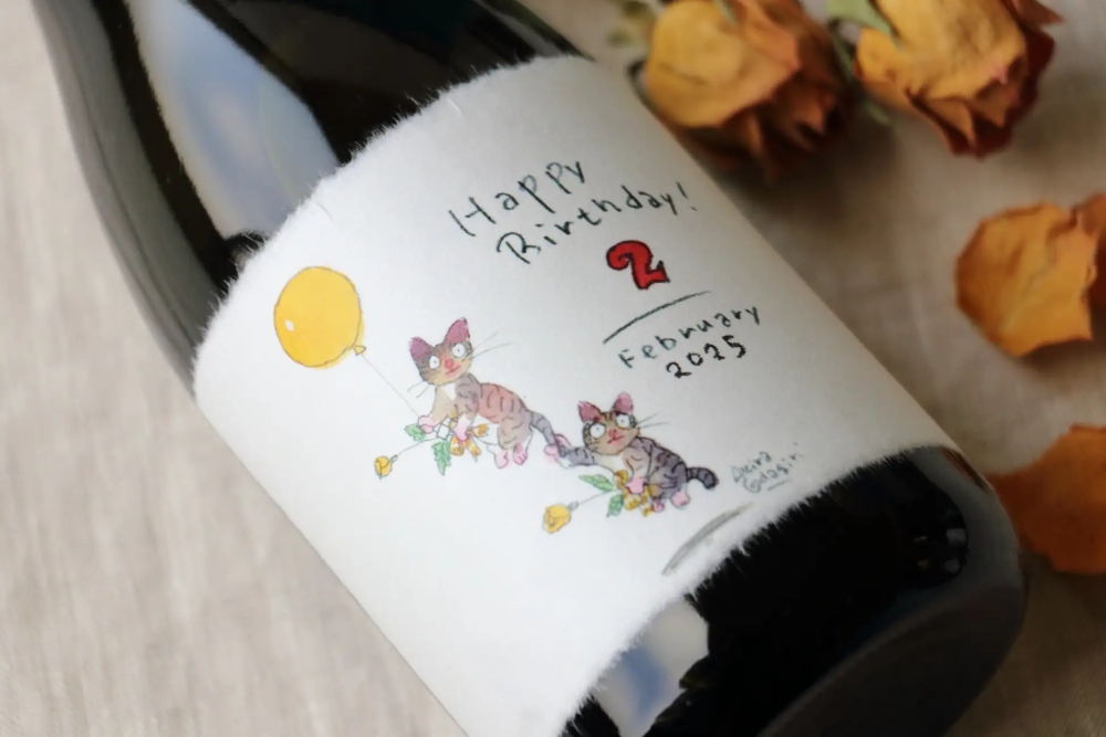 イラストレーターの小田桐昭氏が描き下ろした猫のイラストと誕生日の日付を組み合わせ、オリジナルのラベルを作れる特別なギフトです。