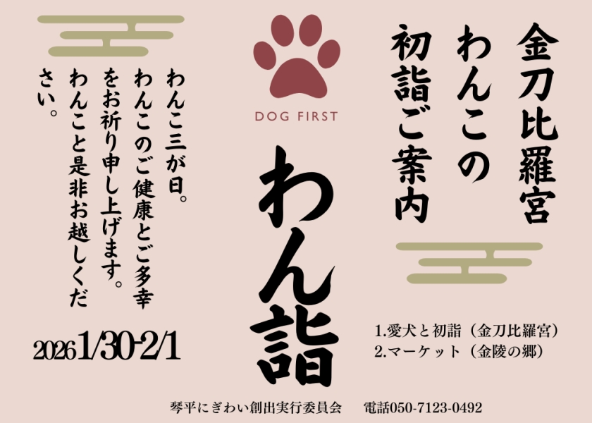 金刀比羅宮で愛犬と新年を祝う「2026年 わん詣~わんこの三が日~」 1/30~2/1