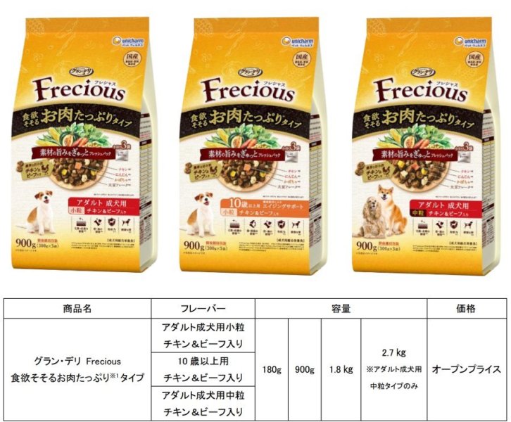 ユニ・チャーム、プレミアムフード「グラン・デリ Frecious」新作や40周年記念「愛犬元気」など