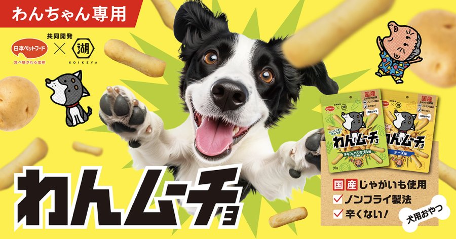 湖池屋、日本ペットフードと共同開発した愛犬用おやつ「わんムーチョ」