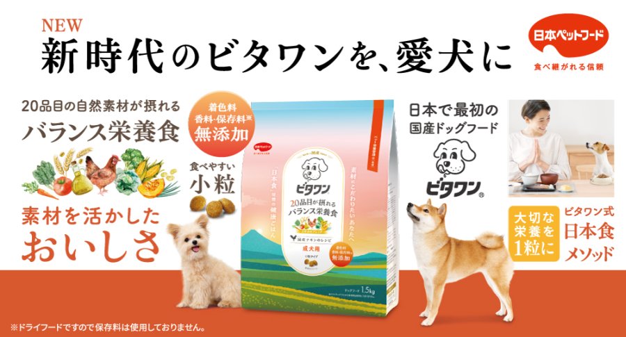 日本ペットフード、20品目の自然素材を配合した「日本食発想」新型ビタワン