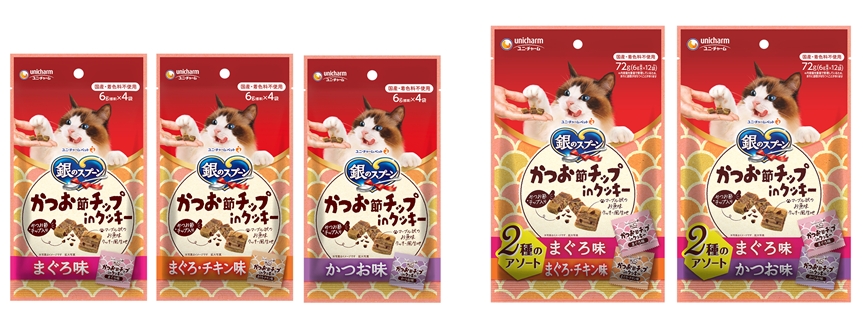3種類のおいしさを一度に味わえる猫用ドライおやつ「銀のスプーン かつお節チップinクッキー」