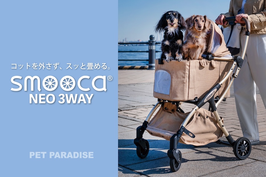 ペットパラダイス、カート・キャリー・車用の3WAYで使える多機能ペットカート「スムーカネオ」を発売