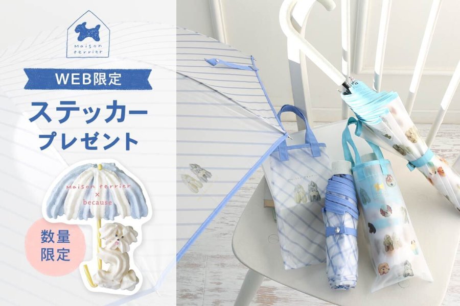 ブルーブルーエ、犬モチーフのお菓子店「メゾンテリア」とコラボした雨傘2種