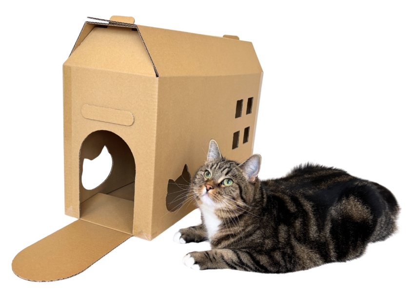 猫の爪とぎ専門店カリカリーナ、梱包箱が”おうち型おもちゃ”になる新サービス