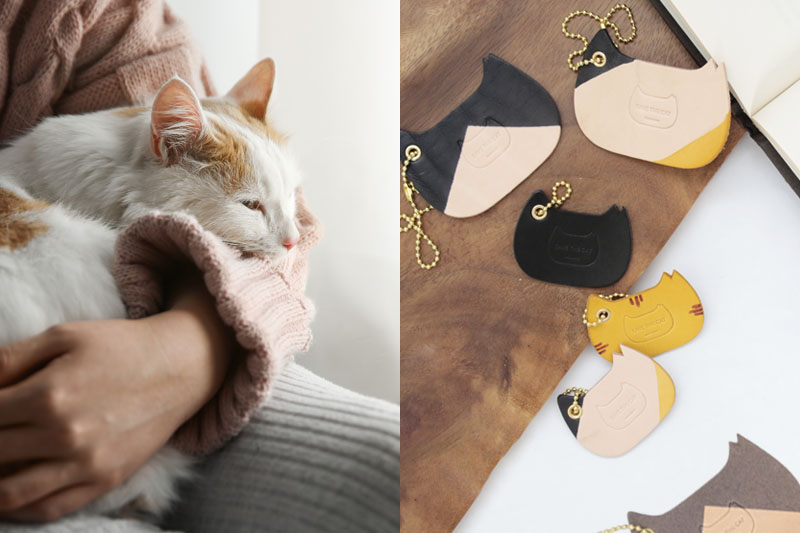 ネコリパブリック、ナチュラルレザーのハンドメイド猫型チャーム